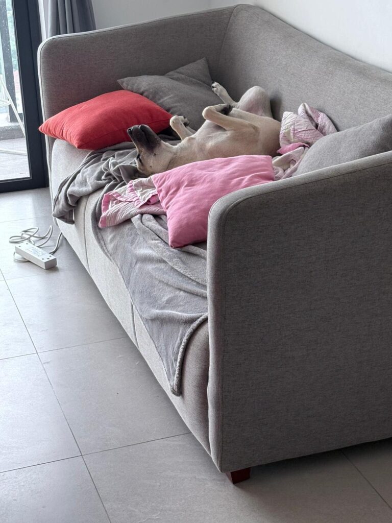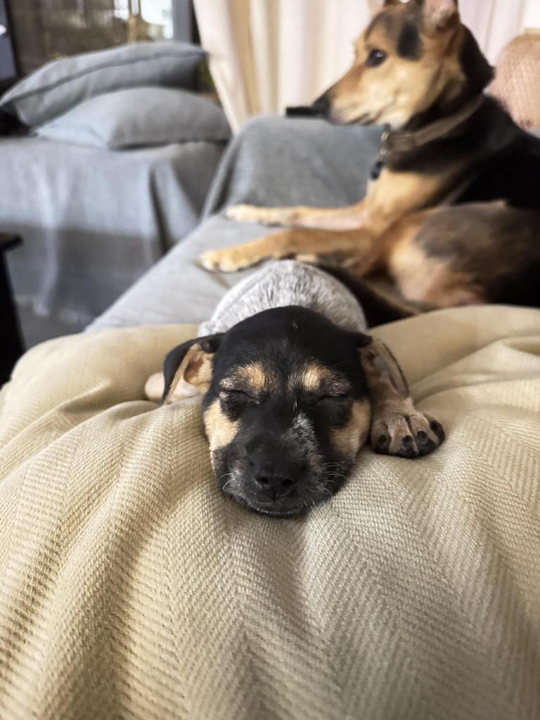 Jasper’s luck finally turned when he found his forever family. Once accustomed to sleeping on cold, hard concrete, this lucky pup is now living the dream; he’s upgraded to the softest sofas and coziest cushions. However, he’s not just stealing the sofa and all the cushions in his forever home; he’s stolen his owner’s heart completely. And his owner wouldn’t have it any other way.
