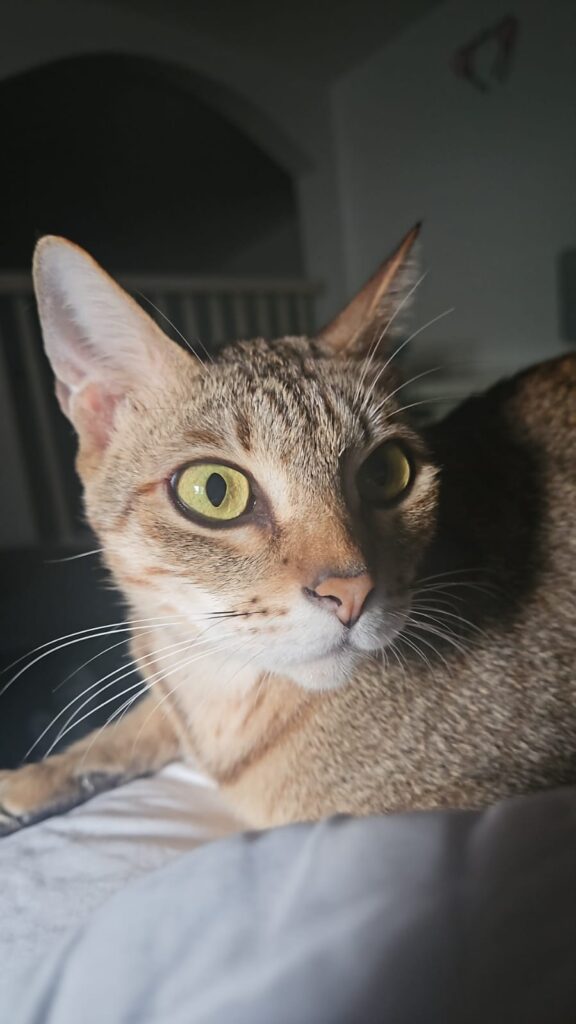 Echo, her charming son, is a bundle of playful energy who thrives on attention. Though he might appear a bit shy around new people or in bustling environments, his sweet and affectionate nature shines through once he feels secure. Once comfortable, Echo transforms into a devoted companion, showering his loved ones with cuddles and playful antics. His bond with his mother, Vera, is truly special, and they bring each other comfort and security.