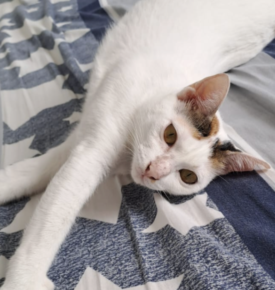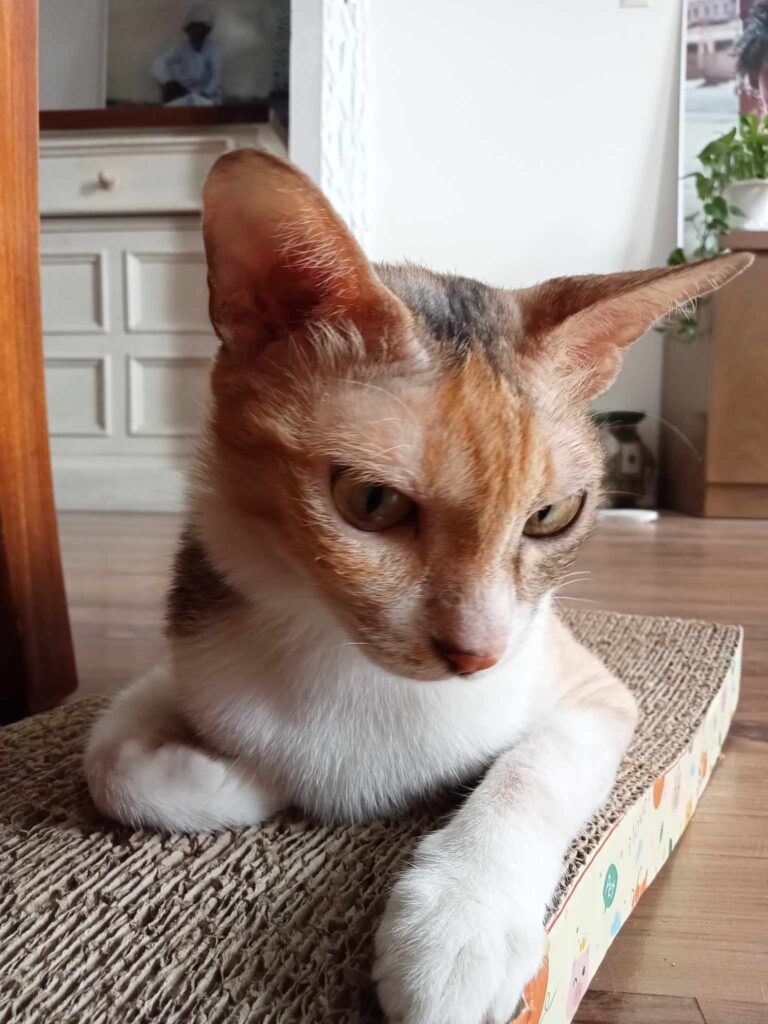 Deedee is a charming 3-year-old with beautiful white and ginger markings. She’s a true sweetheart through and through, so prepare to be charmed by this playful cuddlebug.