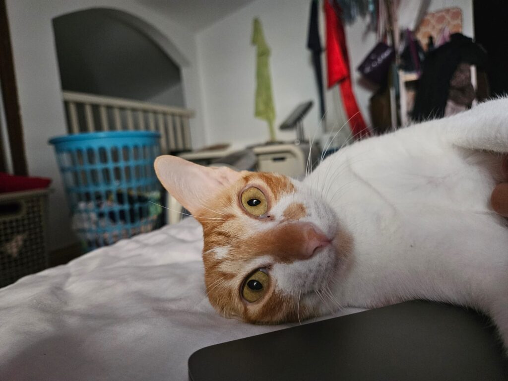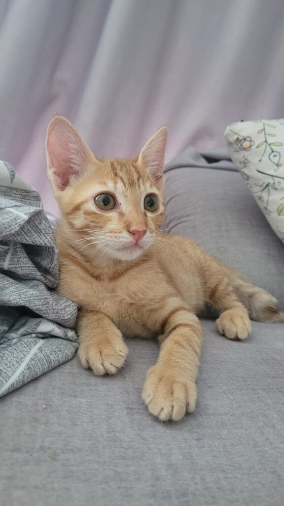 Tagging along is her brother, Noodle, a 3-year-old male ginger domestic shorthair. This playful little goofball loves to explore and socialize. They famously get along with other felines, especially with each other; However, their compatibility with dogs has not been tested. Nevertheless, neither of them is a fan of being picked up or held, preferring to give affection on their own term, often curling up in their human bed and head at night.